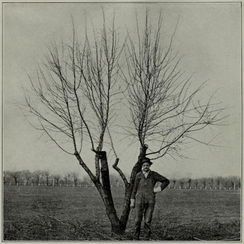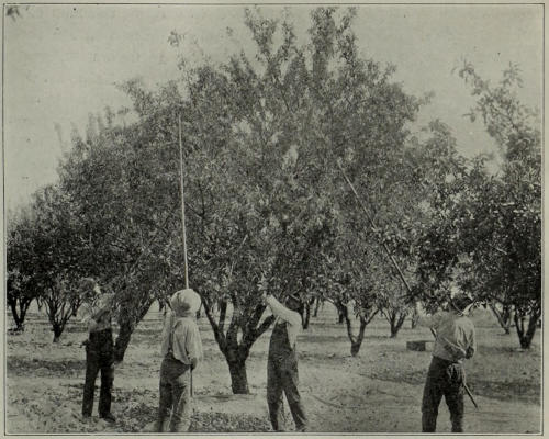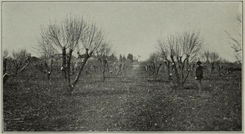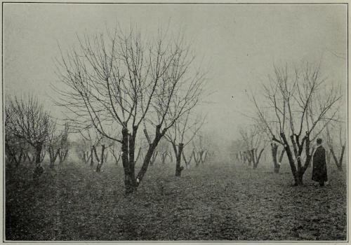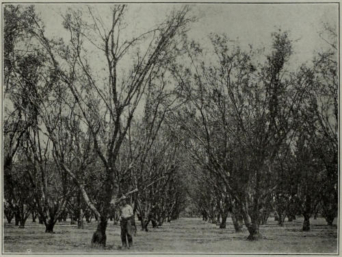 These plantings being on the floor of the valley are more subject to frost than the foothill plantings, but they have the advantage of being on the rich valley soils, and while they may lose a crop occasionally from frosts, they make it up in the long run by the much larger growth of the trees and their ability to produce larger yields. Many orchards do not show any such ability to produce large crops, but such a failure must be attributed to lack of pruning and care,[15] rather than to any inherent inability of the large trees to produce nuts. Again, trees on the rich and moist bottom lands may be kept so vigorous and healthy by good care that they are apparently able to endure lower temperatures than less vigorous trees on the shallow and poor upland soils where frosts are less common or severe.
