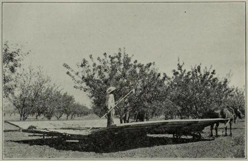 Rainfall.—It is impossible to state any definite amount of rainfall which will or will not maintain the trees and enable them to bear regular crops of nuts, for so much depends not only on the variation in rainfall in different sections and in different years, as regards distribution throughout the year, but also on the time and intensity of the fall, the character of the weather following the rains and the ability of the soil to receive and retain the rain that falls. Ordinarily, however, with the above factors favorable, it is conceded that where the winter rainfall averages sixteen inches, almonds can generally be grown without supplementing the water supply by irrigation, if the orchardist exercises reasonable care to conserve the moisture for the[11] use of the trees. Where the rainfall is inadequate some means of irrigation must be found to make up the deficit.
