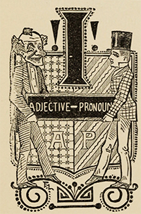 “Him is mine,” said Pronoun, sadly; “it is a personal pronoun, third person and singular number, standing instead of the noun Jack; but,” he added, with tears in his eyes, “it is of no use to give me a mark for it, as I shall lose it again on account of the case. Him is the objective case, governed by the preposition before;” and Pronoun turned away with a sob.