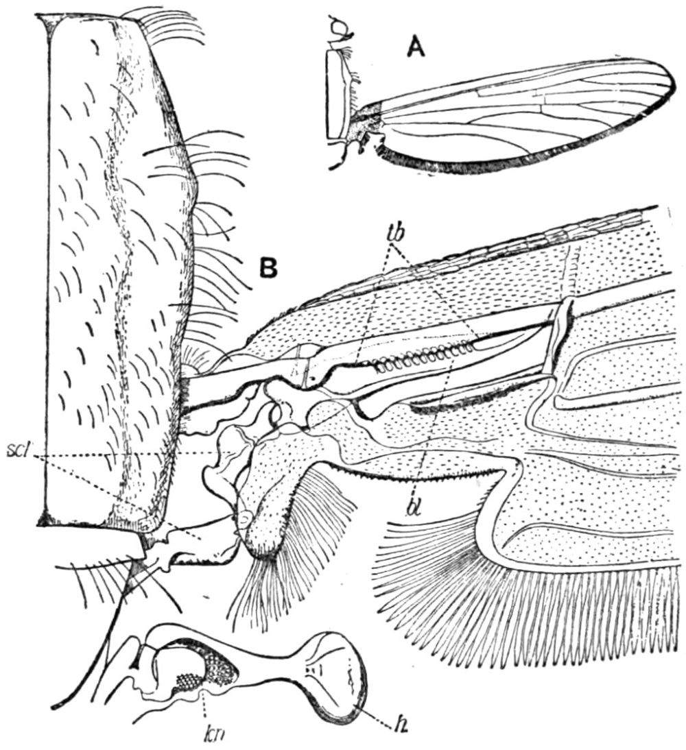 On emerging from the pupa-case the insect has to push its way to the surface of the rotting vegetation in which it has been produced. This it does partly by the alternate inflation and deflation of the so-called ‘frontal sac,’ and by actively pushing forward the body by means of its legs. Once on the surface the insect begins to clean itself, pumps[Pg 131] air into its body, forces it along the tracheae in the wings, which expand and ultimately harden. In the processes of unfolding they are aided by the hind legs. For a time the insect is immobile, gradually stiffening; but when the integument has hardened it flies off to explore the outer world. Under normal conditions the whole life-cycle varies from twenty-seven to thirty-seven days.