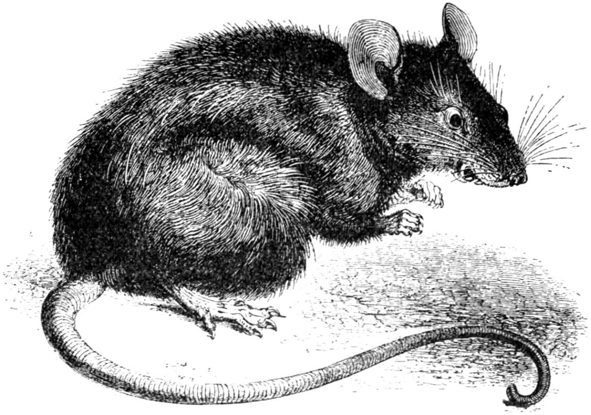 The overwhelming majority of rats fall under two species: (i) Mus rattus, the black rat, and (ii) Mus decumanus, the brown rat. The original home of both species is, according to Dr. Blandford, Mongolia; but the date of their first appearance in our islands is a matter of some uncertainty. According to Helm, M. rattus passed into Europe at the time of the Völkerwanderung, and doubtless accompanied the migrating Asiatic hordes on their journeys westward. The name rat appears in early High-Dutch glossaries, it is mentioned by Albertus Magnus, and occurs in early Anglo-Saxon writings in England. This evidence is, however, not conclusive that in those times the rat had entered Great Britain; indeed, according to Bell,[16][Pg 136] the black rat was not known here until before the middle of the sixteenth century: at least, he says, no author more ancient than that period has described, or even alluded to, it as being in Great Britain, Gesner being the first to do so. Jenyns, in his ‘Manual of British Vertebrate Animals,’[17] describes M. rattus as ‘truly indigenous’; but this is in comparison with the brown rat, whose comparatively recently arrival he chronicles. M. rattus is said to have been common on the continent of Europe in the thirteenth century.