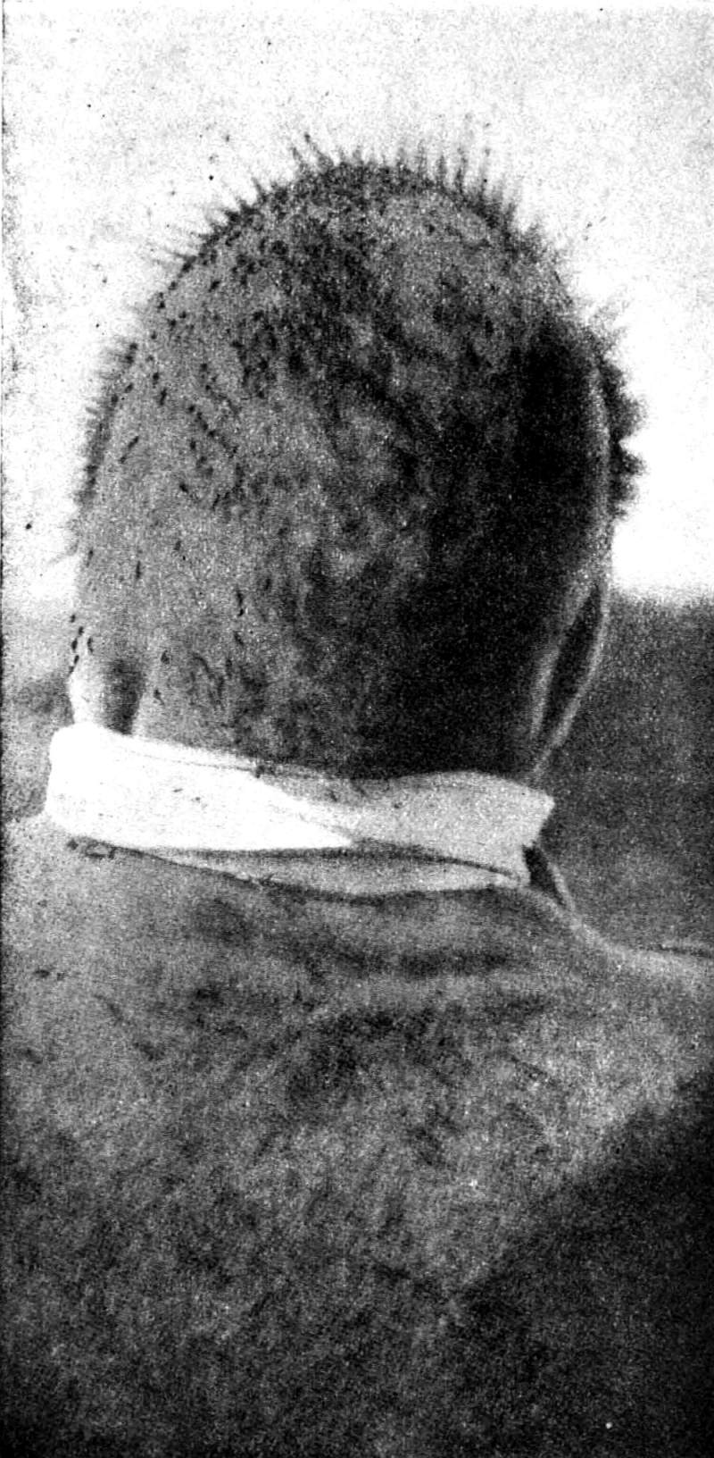 Mosquitos in the Colvith River delta, Arctic Alaska, about 71° lat., July 1909. The Eskimo, Natkusiak, had stood still for a minute or two, and refrained from brushing them off, while loading a uomiak. (From the American Museum Journal.)
