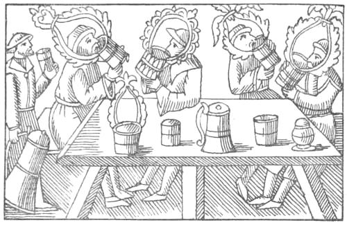 Beowulf—Ale—Beer—Mead—English Wine—The Mead Hall—Drinking Horns—Tosti and Harold—Pigment, etc.—The Clergy, etc., drinking—Northern Wine drinking—King Hunding—Brewing—Strange Drinking Vessels, and their Use—Punishment of Drunkards.
