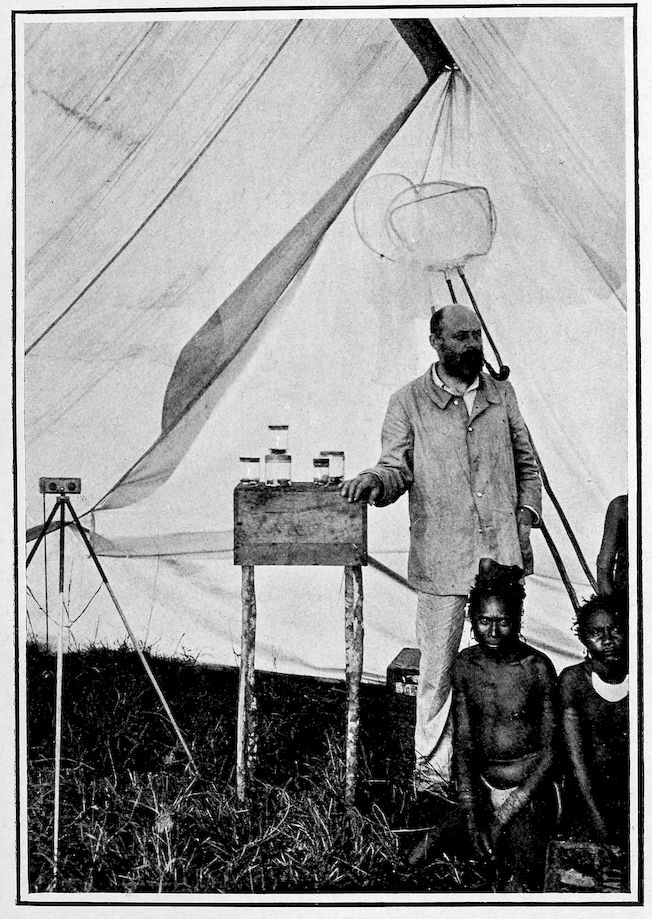 | Journey continued—A Glorious Scarlet Creeper—Dinawa—Site for Camp selected—Building Camp—Native Assistance—Organisation for Scientific Work—Daily Routine—Teaching the Natives how to Catch and Handle Entomological Specimens—Sudden Affluence leads one of my Native Boys to Desert—He is Caught and Reformed—My best Native Assistant and his Wife—Female Influence a great Asset with other Women—The Day’s Work—Collecting at Night—Photography—A Dark Room in the Wilds—Native Interest in Developing | 105 |