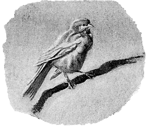 Gypsy’s cage used to be put all day on the window-sill; and I began after a time to be aware that he was liable to be seized by sudden agitations, when he fluttered backwards and forwards in his cage, with a quick, excited note. A few days more and the cause of this agitation became apparent; for a little goldfinch, a hen goldfinch I suppose, came and sat upon the window-sill.
