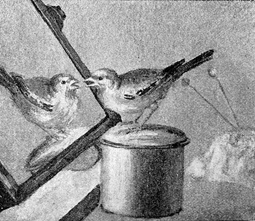 The intimacy rapidly improved; the goldfinch would come into the room and sit on Gypsy’s cage; it made friends with a siskin and a bullfinch in the next room, and would roost in an empty cage there at night.