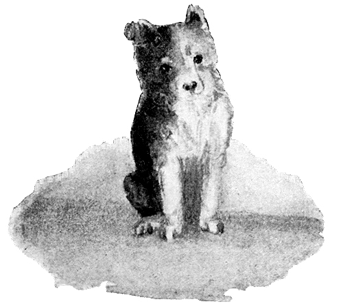 97 WE were called into my mother’s room one day, and shown a hamper which had just arrived. The hamper was strangely agitated, like that hasty-pudding in which Tom Thumb sheltered, and when it was opened out rolled a puppy! It was a collie puppy, long haired, black, with tan98 cheeks, a white tip to his tail, white collar and paws, and wholly fascinating.