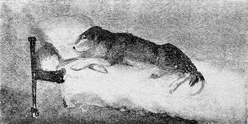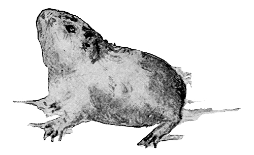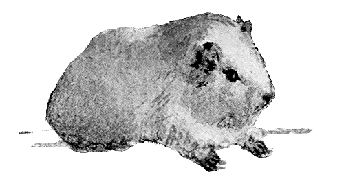 The guinea-pigs lived in a large estate fenced in by wire; inside the yard were various settlements, bedrooms, all with free access to the yard, and usually to the ground beyond, for they made holes under the wire and disported themselves outside. They had a beautiful rack to hold their hay, saucers for bran, and were given a breakfast of soaked bread every morning. At breakfast-time shrill whistles might be heard from the guinea-pig129 yard. Most people think guinea-pigs have only one noise, but in reality they have, quite clearly defined, three fundamental notes, of desire, contentment, and anger. They whistle when they are hungry, make what are called “guinea-pig noises” when they are well content—for ordinary conversation, and they gnash their teeth when they are angry.