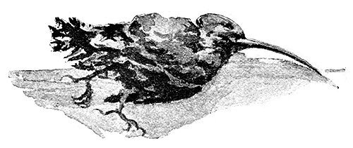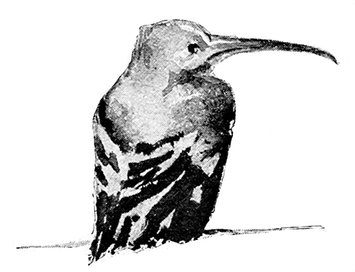 I refused to give them the wages of sin, and they were too much surprised to attempt to hinder the departure of the hoopoe. Indeed, if they had kept it much longer, it would have departed without assistance by the silent road, for one claw had been tied back to its leg, and it had been swung in that manner till its tormentors happened to think that they had better try the wings instead; its crown of feathers had been pulled out; and when I got back to the hotel, it shut its eyes and fell forwards on the point of its beak as if it was about to die. The string had been tied so tightly that it was with difficulty that we got it free from its bonds, and then we plied it with whisky and water. That was no easy matter either, for it would not open its mouth, and one had first to get the long beak open, and then to hold it so, while from a feather dipped in the refreshing beverage a drop trickled down the pink throat; then the bill was shut, and one watched to see if the feathers of the throat would138 ruffle and give sign that the drop was passing down. The method succeeded, for presently the little forked tongue was shot out to suck up the liquid, the little brown eyes opened, and the hoopoe, taking in the situation, hurried into the corner of the window-sill, and supposed that he was hiding himself by laying his long bill up the wall.