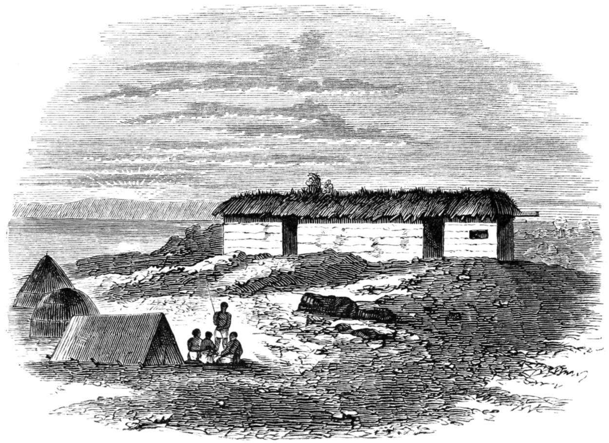 The Land of the Moon, which is the garden of Central Intertropical Africa, presents an aspect of peaceful rural beauty which soothes the eye like a medicine after the red glare of barren Ugogo, and the dark monotonous verdure of the western provinces. The inhabitants are comparatively numerous in the villages, which rise at short intervals above their impervious walls of the lustrous green milk-bush, with its coral-shaped arms, variegating the well-hoed plains; whilst in the pasture-lands frequent herds of many-coloured cattle, plump, round-barrelled, and high-humped, like the Indian breeds, and mingled flocks of goats and sheep dispersed over the landscape, suggest ideas of barbarous comfort and plenty. There are few scenes more soft and soothing than a view of Unyamwezi in the balmy evenings of spring. As the large yellow sun nears the horizon, a deep stillness falls upon earth: even the zephyr seems to lose the power of rustling the lightest leaf. The milky haze of midday disappears from the firmament, the flush of departing day mantles the distant features of scenery with a lovely rose-tint, and the twilight is an orange glow that burns like distant horizontal fires, passing upwards through an imperceptibly graduated scale of colours—saffron, yellow, tender green, and the lightest azure—into the dark blue of the infinite space above. The charm of the hour seems to affect even the unimaginative Africans, as they sit in the central spaces of their villages, or, stretched under the forest-trees, gaze upon the glories around.