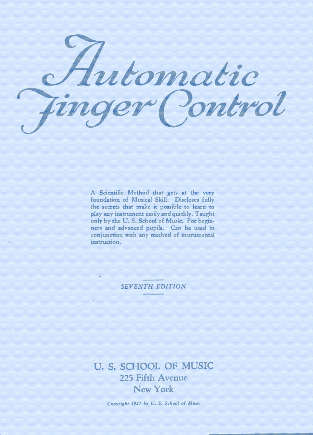 What you have already got out of AUTOMATIC FINGER CONTROL depends on what you have put into it. It is like putting money in a bank and taking it out with interest. You put your time in with the specific knowledge that years of study have made available to you in easily absorbed form, and you take out a distinct saving in time and effort in learning to play your favorite instrument.