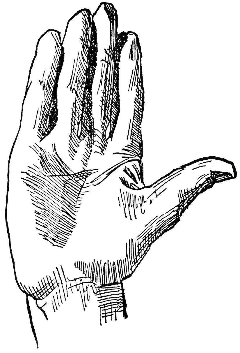 Lay the left hand flat palm down on a table, book, or other smooth surface. Open the thumb out of the way of the fingers.