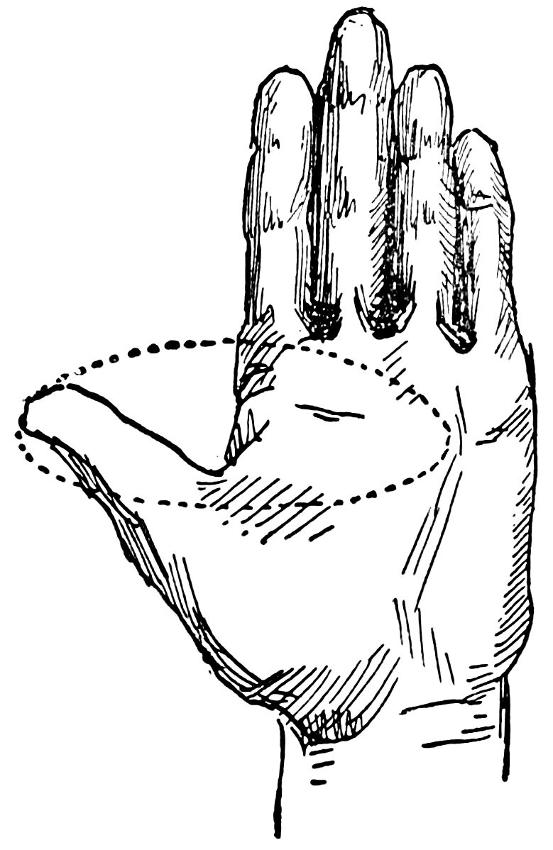 Extend the left hand before you, fingers close together. Moving only the joint down near the wrist, swing the thumb around in a circle. Do this five times without muscular resistance and five times with.