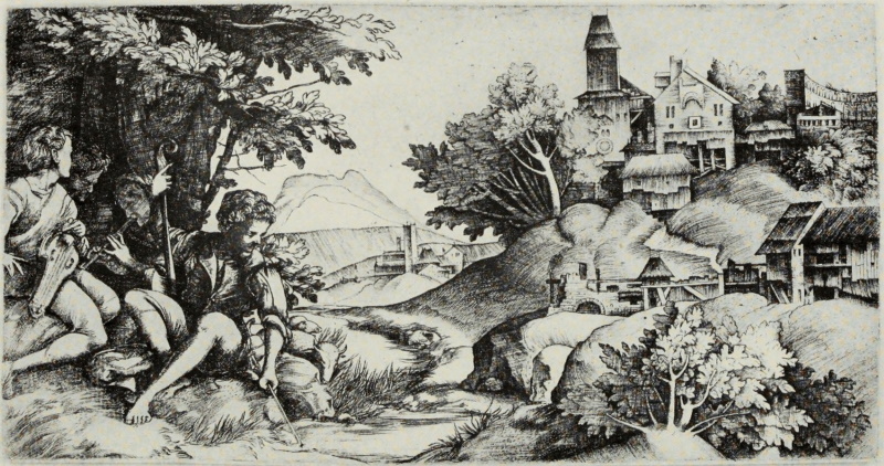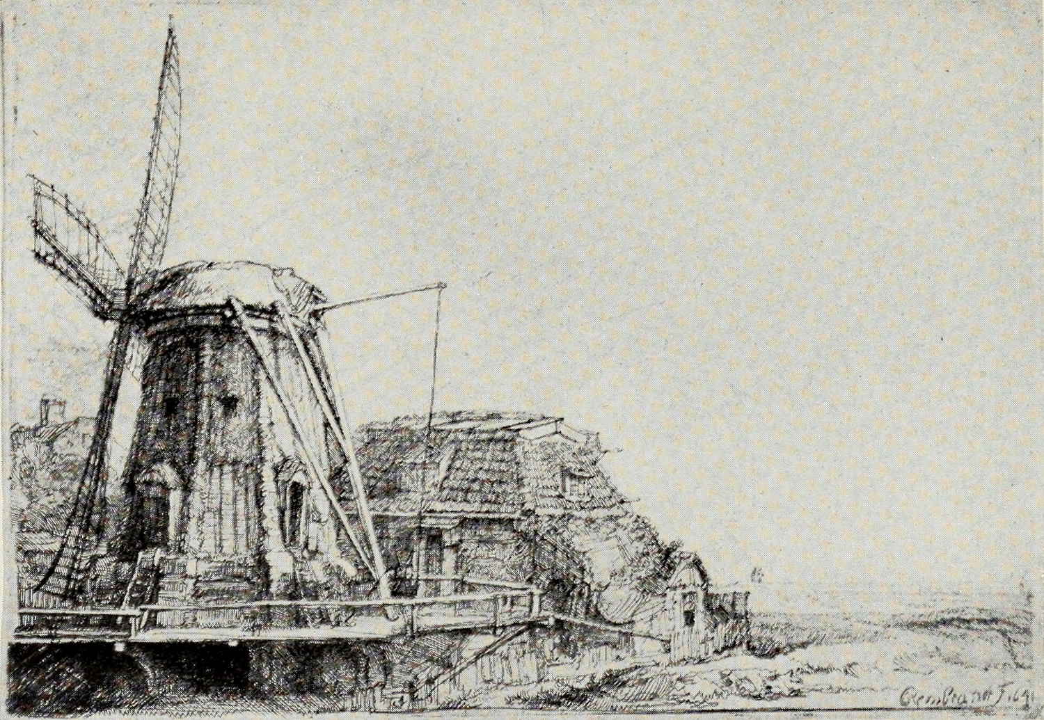Whistler, “the greatest etcher and the most accomplished [Pg 273]lithographer who ever lived” (according to Mr. Joseph Pennell), seems to have interested himself in landscape hardly at all. Not even his most ardent disciples would assert that the master’s few purely landscape plates contribute greatly to the pyramid of his fame. But even here one must tread softly. Whistlerium tremens is still a highly contagious disease; and has not his official biographer written “All his work is alike perfect”? How then may a modest lecturer presume to praise or compare? Let Mr. Pennell speak: “Look at Rembrandt’s prints made, I do not know whether with Amsterdam or Zaandam in the background, and then at Whistler’s of the same subjects. Rembrandt drew and bit and printed these little plates as no one had up to his time. But Whistler is as much in advance of Rembrandt as that great artist was of his predecessors. In these little distant views of absolutely the same subject, Whistler has triumphed. It is not necessary to explain how: you have only to see the prints to know it.... The older master is conservative and mannered; the modern master, respecting all the great art of the past, is gracious and sensitive, and perfectly free.”
