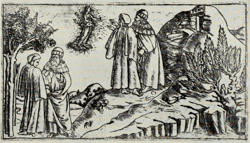 | Dante and Virgil with the Vision of Beatrice. From the “Divina Commedia,” Florence, 1481 |