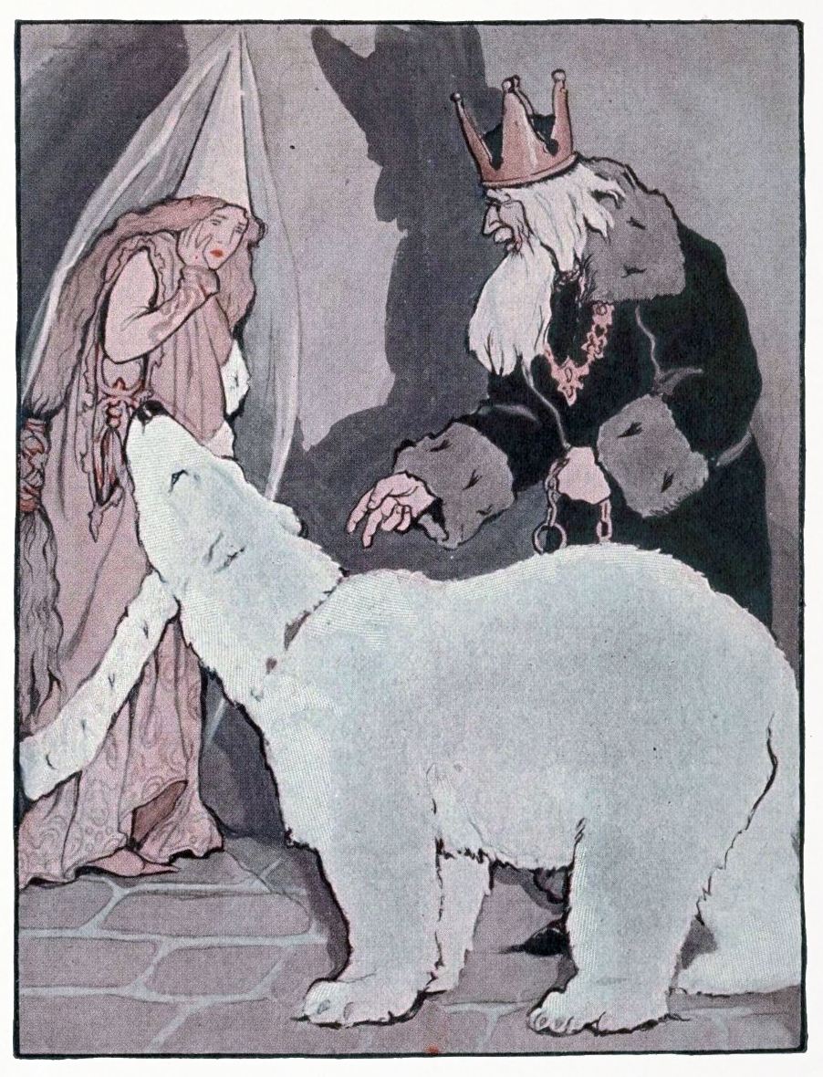 “Why are you so late?” she cried. “A young maiden has been here, a fine and dainty morsel, all pink and white, and as tender as a bird, and you might have had her for your supper if only you had returned earlier, in time to catch her.”