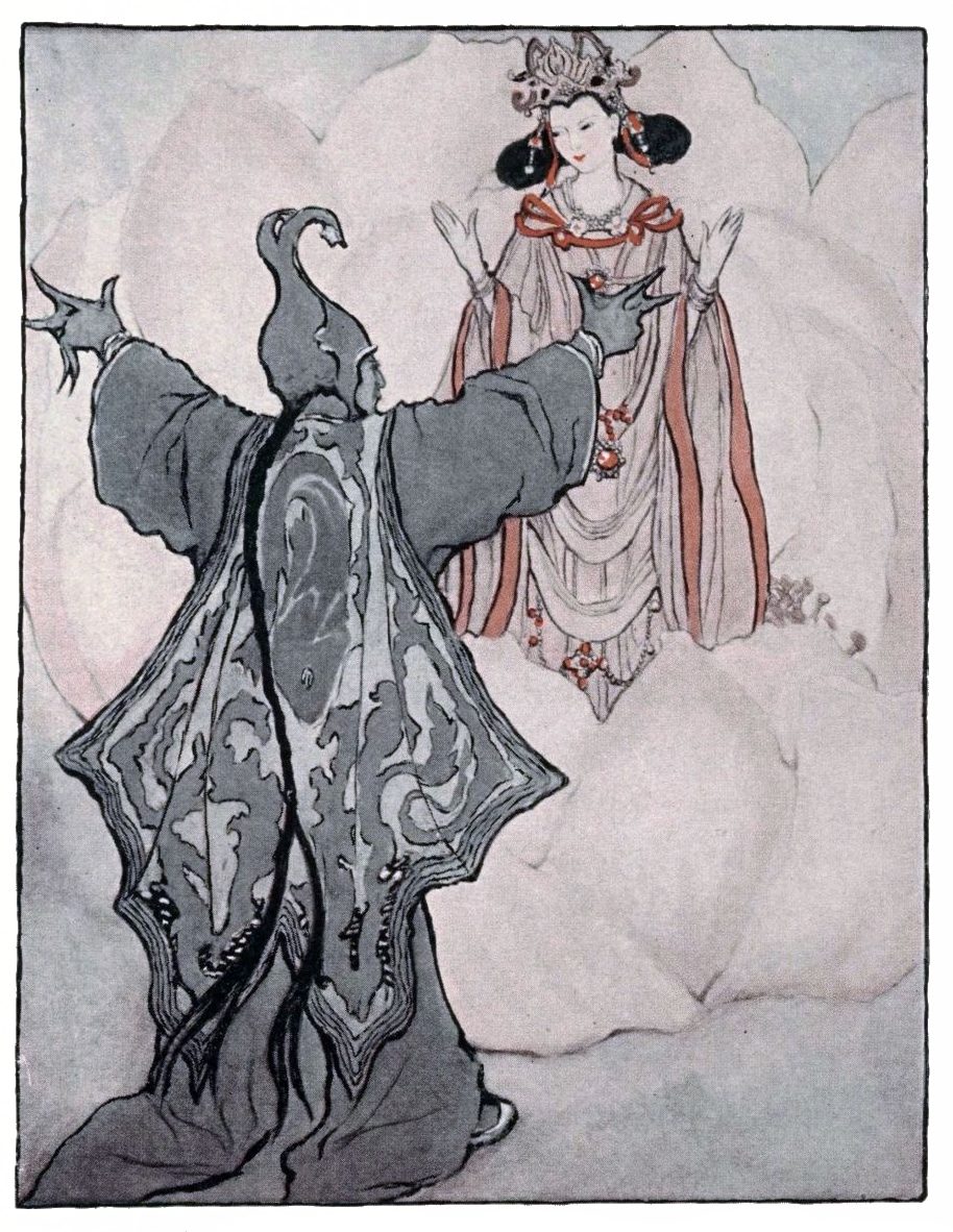 When the Rajah saw the change that had come over her he was filled with joy, and he told her who he was and what had happened, and he asked her whether she would come back to his palace with him and be his Ranee.[2]