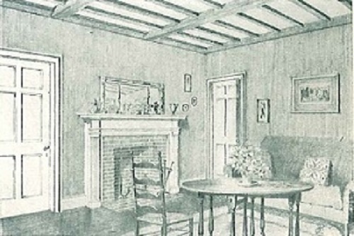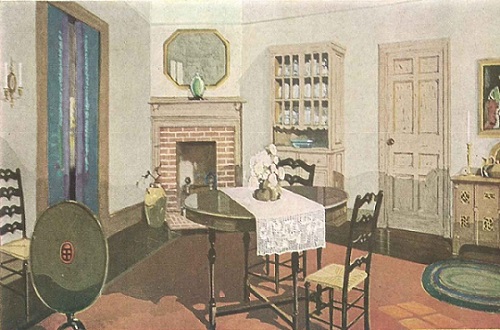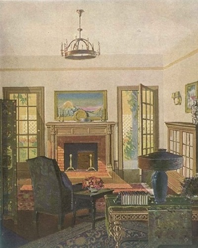 A fireplace here is less essential than in the living room, but if you can include one, it contributes to the spirit of hospitality and cheerfulness which should characterize the room. Choose for it, from among the Curtis standard designs, a simpler mantel than that in the living room.