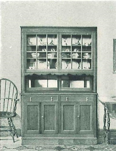 Curtis radiator enclosures with iron grills solve a perplexing problem in an attractive manner. A hanging china closet takes up no floor space, and is more appropriate and decorative than a picture.
