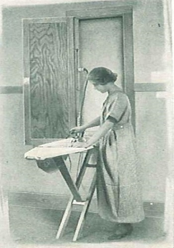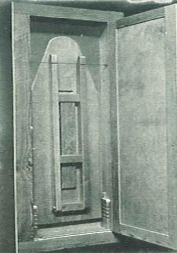 There should be a built-in ironing board in every kitchen. It is protected from dust, is completely out of the way and is always ready for use. This board is as easily installed in an old home as it is in a new house.
