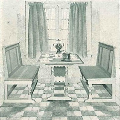 Sometimes bookcases are used in combination with a permanent seat, as for example around a window, and the recess thus produced can be made very alluring. Permanent seats also utilize many otherwise unused corners and nooks. They have hinged tops and so can be used for storing miscellaneous household articles.
