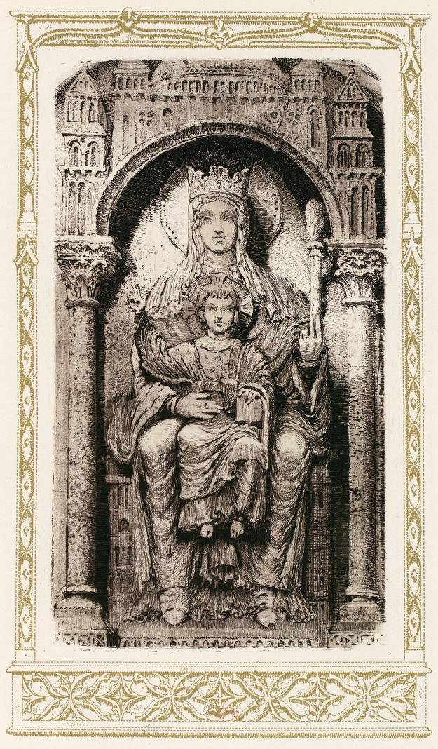La symbolique, qui est la science d’employer une figure ou une image comme signe d’une autre chose, a été la grande idée du moyen âge, et, sans elle, rien de ces époques lointaines ne s’explique. Sachant très bien qu’ici-bas tout est figuré, que les êtres et que les objets visibles sont, suivant l’expression de Saint Denys l’Aréopagite, les images lumineuses des invisibles, l’art du moyen âge s’assigna le but d’exprimer des sentiments et des pensées avec les formes matérielles, variées, de la vitre et de la pierre et il créa un alphabet à son usage. Une statue, une peinture, purent être un mot et des groupes, des alinéas et des phrases ; la difficulté est de les lire, mais le grimoire se déchiffre. Des livres tels que le « Miroir du Monde » de Vincent de Beauvais, le « Speculum Ecclesiæ » d’Honorius d’Autun, si bien mis en valeur par M. Male, le Spicilège de Solesmes, les apocryphes, la Légende dorée, nous donnent la clef des énigmes.