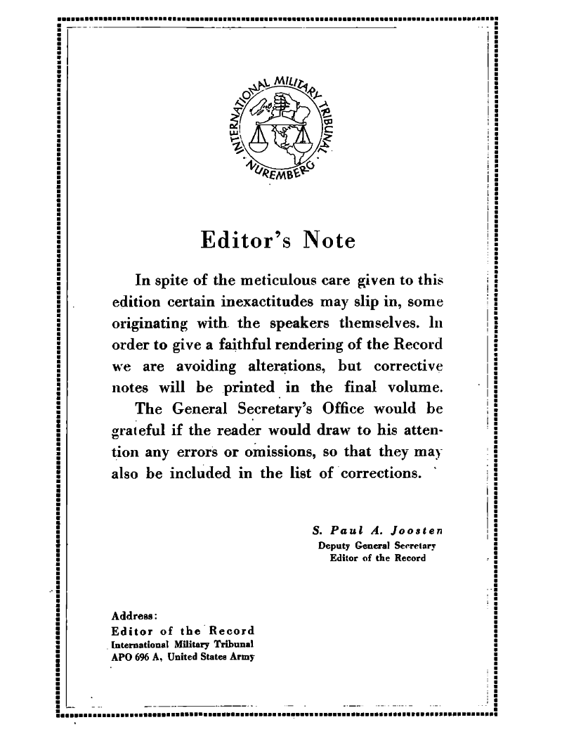 Although some sentences may appear to have incorrect spellings or verb tenses, the original text has been maintained as it represents what the tribunal read into the record and reflects the actual translations between the German, English, French, and Russian documents presented in the trial.