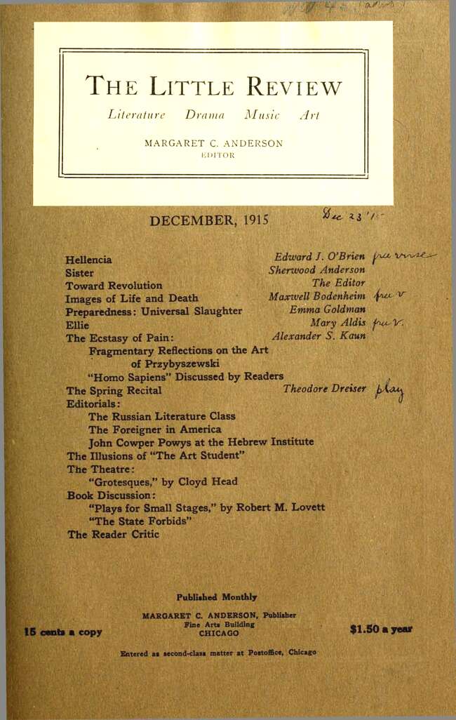 Title: The Little Review, December 1915 (Vol. 2, No. 9)