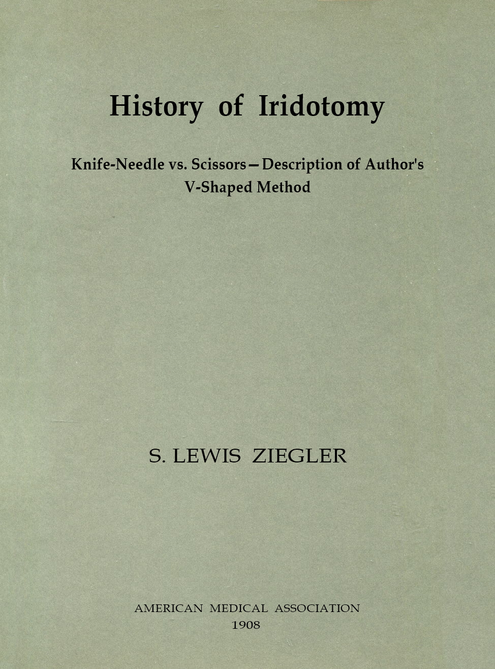 We have carefully reviewed the history of iridotomy for nearly two centuries, and noted how the pendulum has swung from knife-needle to scissors, and back again. We have learned that Cheselden, the father of iridotomy, originated the method of incision by the knife-needle, which Heuermann modified, and Adams later revived and improved. We have seen how Janin abandoned this procedure and originated the scissors method, which Maunoir greatly improved and caused to hold sway for more than half a century. We have been deeply impressed by the fact that the mature, judicial mind of von Graefe led him to abandon the scissors and revert to the knife-needle method. We have seen how, soon after his death, the great influence of De35 Wecker had swerved the thought of the ophthalmic world back to the adoption of the scissors method in a greatly improved form.