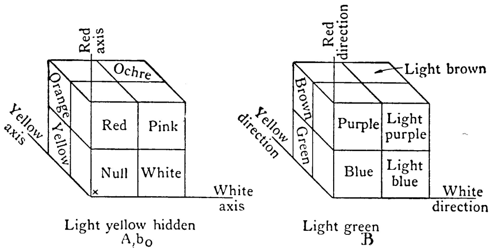 These point, line, face, etc., names should be used in connection with the corresponding colours. The names should call up coloured images of the parts named in their right connection.
