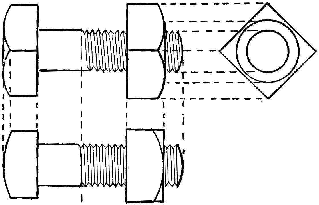 Note.—Sketching is often in demand because there is no time for finished or careful drawings, and the one who can draw a few lines in a moment to let a sudden necessity be known, is the man of the hour. All candidates for First Class Engineer’s Certificates in marine service in the navy have to undergo an examination in rough drawing; this is intended not so much as a proof of the applicant possessing the capability of a draughtsman, but in the event of any injury to the engines in his charge, so that he may be able to send to his Superintendent a rough drawing of the particular part, properly dimensioned, so that it could be worked from, and time saved on the arrival of the ship at the port where the repairs are to be done.