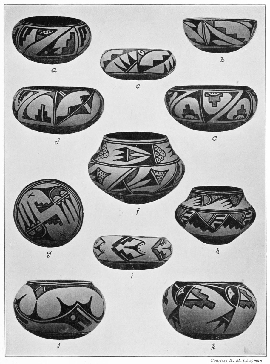 [4] A searching study of San Ildefonso decoration has been made by K. M. Chapman of Santa Fe. When this is published it will throw much light on the morphology of Pueblo design, and upon the relation of San Ildefonso symbolism to that of other Rio Grande pueblos.