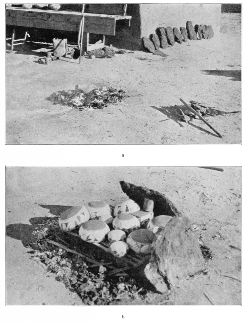 [23] Mrs. Stevenson wrote of Zuñi: “The pieces to be fired are placed upon stones to raise them a few inches from the ground”, implying the absence of a grate (1904, p. 376).