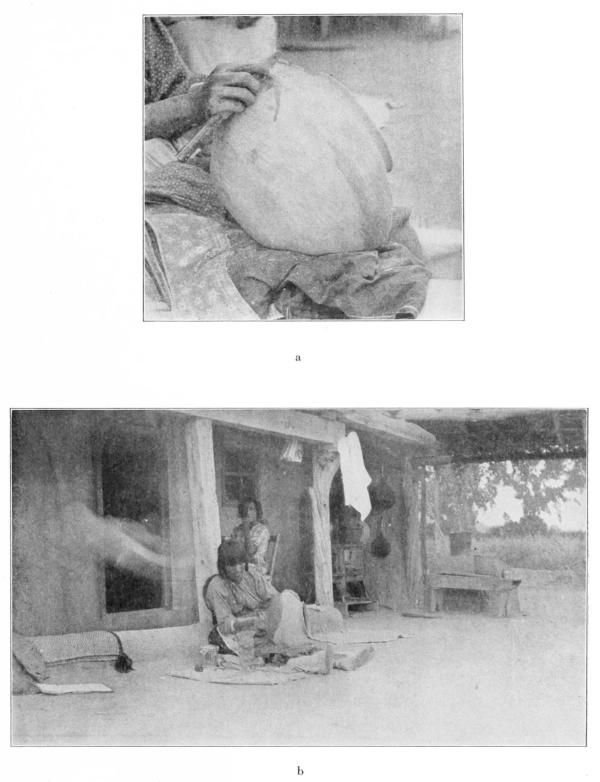 [19] Harrington writes: “Variously shaped section of gourd are used by women to smooth and shape pottery in the making” (1916, a, p. 102). Stevenson, in 1879, noted at Zuñi “a small trowel fashioned from a piece of gourd or fragment of pottery, the only tool employed in the manufacture of pottery” (1883, p. 329). Mrs. Stevenson also speaks of these trowels (1904, p. 374).