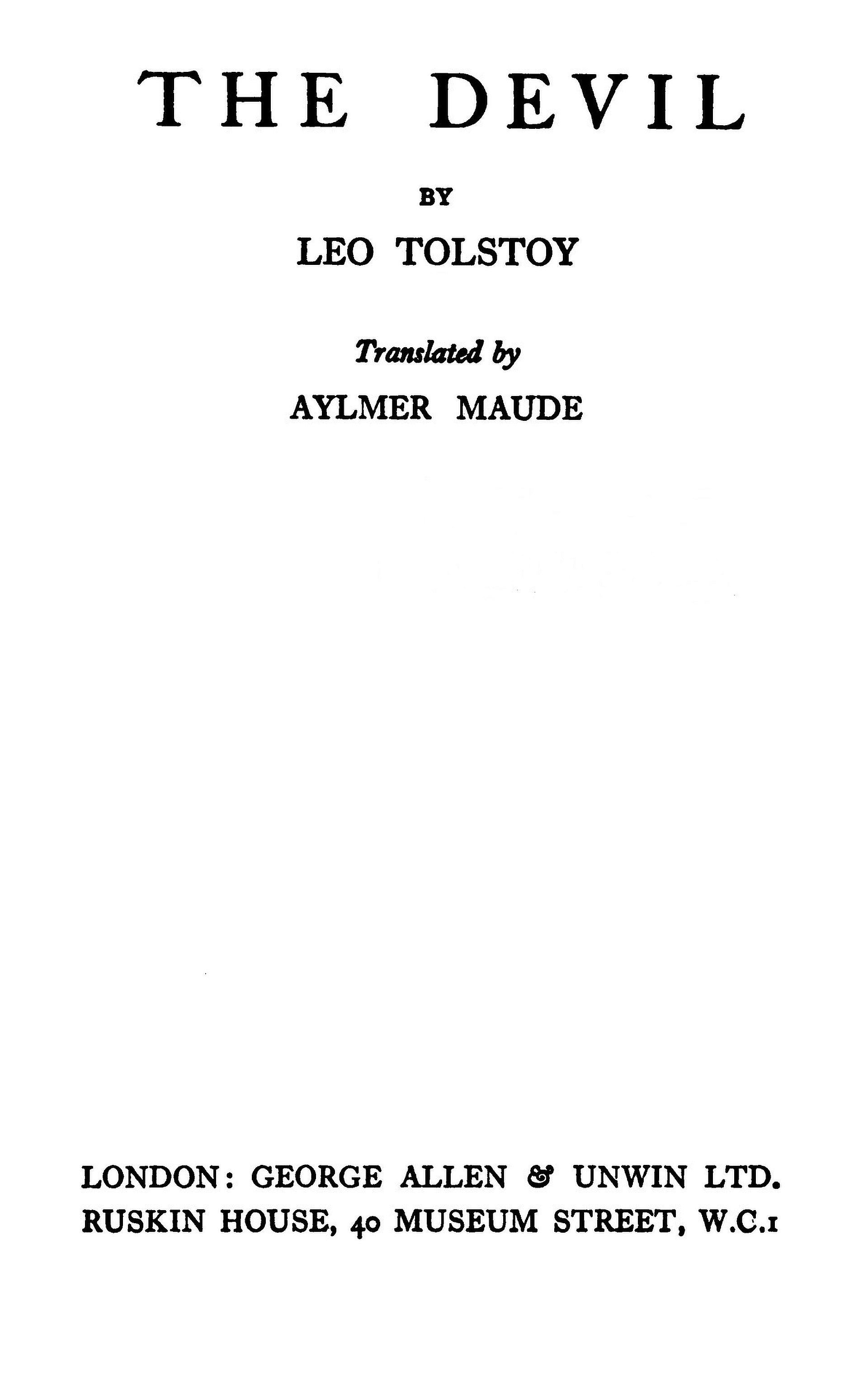 The incident resulted in his writing this story, The Devil—the hero of which yields to a temptation such as that Tolstoy had encountered. It was composed some ten years later, but was not published during Tolstoy's lifetime; nor did it appear in the English edition of his posthumous works issued by Nelson & Sons. It is now translated into English for the first time. Tolstoy had vividly imagined the consequences that might have resulted from yielding to the temptation, and used that mental experience for his story, employing fictitious characters placed in surroundings with which he was familiar and such as those amid which the incident had occurred.
