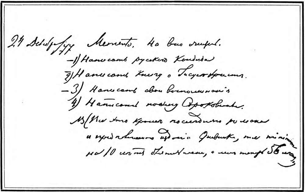 Was die Flüchtigkeit und Unfertigkeit seiner Werke betrifft, so war sich Fjodor Michailowitsch ihrer Mängel durchaus bewußt und gab sie auch ohne alle Beschönigungen zu. Und nicht nur das. Es tat ihm zwar leid um diese „unvollendeten Werke“, aber er bereute nicht nur nicht seine Eile in der Arbeit, sondern hielt sie sogar für notwendig und nützlich. Für ihn war die Hauptsache nicht das Werk an sich, sondern der Augenblick und der Eindruck, wenn auch letzterer nicht vollständig fehlerfrei sein mochte. In diesem Sinne war er ganz Journalist und ein Verleugner der Theorie der reinen Kunst. Seine Pläne und Absichten waren zahllos und so trug er sich immer mit mehreren Themen, die er alle bis zur Vollendung auszuarbeiten gedachte – jedoch später irgend einmal, wenn er mehr Muße haben werde, wenn die Zeiten ruhiger geworden seien! Vorläufig aber schrieb und schrieb er halb ausgearbeitete Sachen – einerseits, um sich die Mittel zum Lebensunterhalt zu verdienen, andererseits, um fortwährend seine Stimme durchzusetzen, in der öffentlichen Meinung, in den Debatten und Erörterungen der Tagesfragen, und um das Publikum nicht in Ruhe zu lassen, sondern immer wieder mit seinen Gedanken aufzurütteln.