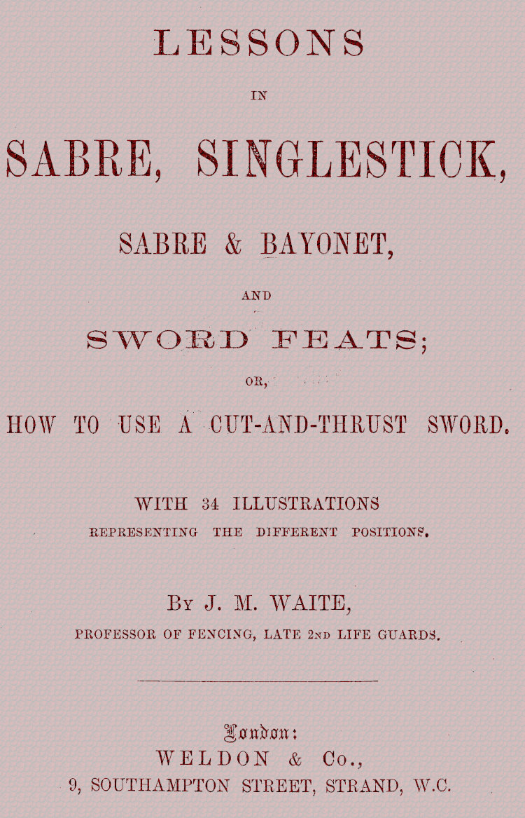 J. M. Waite was a Pupil and subsequently an Assistant of the late M. Prevost, who was formerly Professor of Fencing to the Ecole Polytechnique and the Garde du Corps, also Fencing-Master to H.R.H. the Prince of Wales and to their Royal Highnesses the Comte de Paris, the Duc de Chartres, the Duc d’Aumale, the Duc de Pentievre, &c.