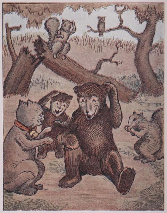 They did not write that letter at all, for “rap a tap,” sounded on the door, and Twinkle Toes and Uncle Mouser appeared, Old Mother Kit-Cat right behind them.