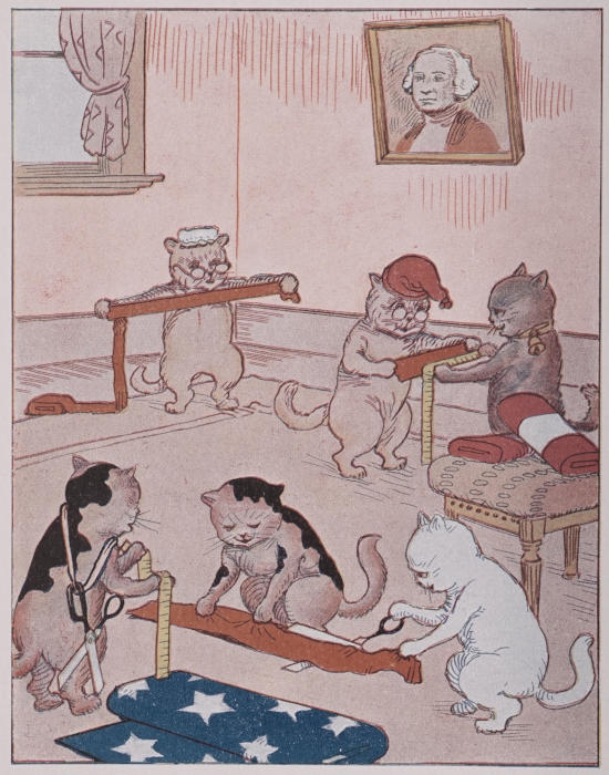 In less time than it takes to tell it, Old Uncle Mouser and Mother Kit-Cat, and Twinkle Toes, were measuring the bunting to make a great big flag.
