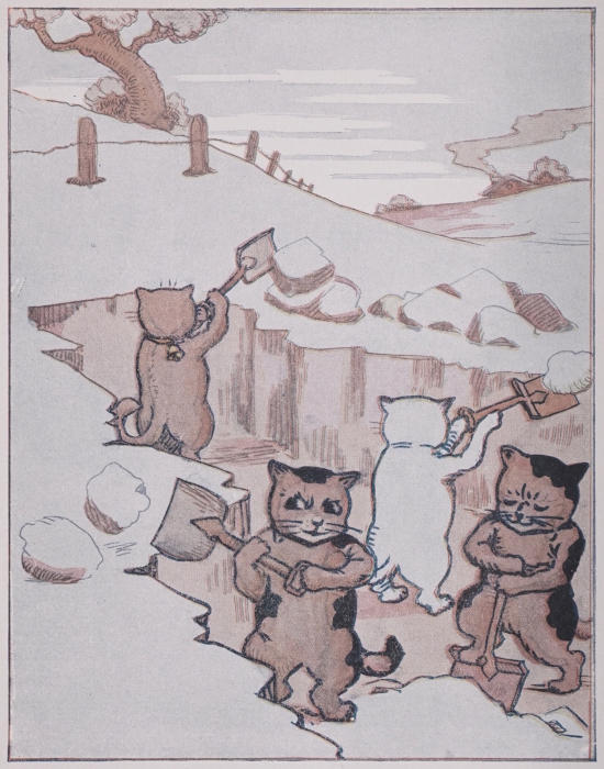 The Three Little Kittens wanted to go[67] out sliding on the ice, but Mother Kit-Cat had told them they must keep house while she was gone.