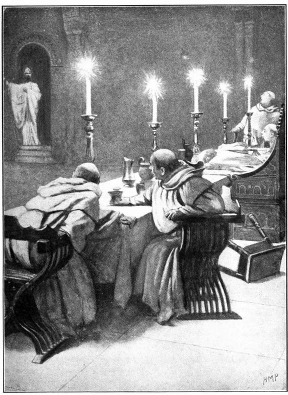 On the return of consciousness he finds himself enshrined as a saint, thanks to the strange physical phenomena of his suspended animation, and learns from the Abbot that he has lain there in the odor of sanctity, according to indisputable church records, during 300 years.