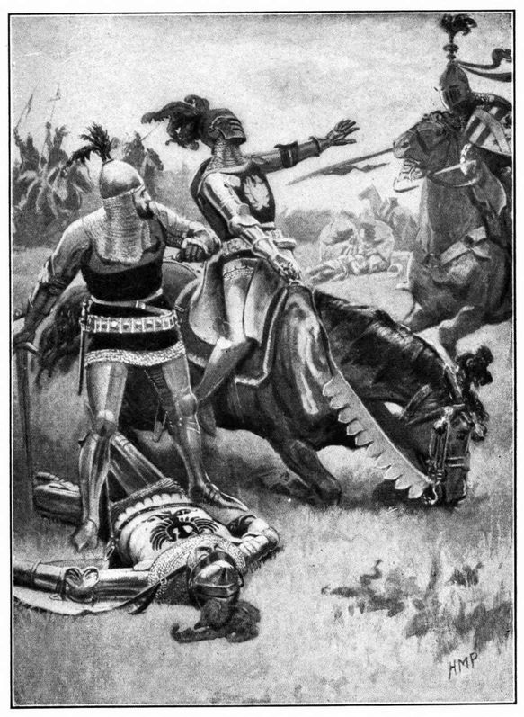 He wanders off again, finding everything new and strange, and becomes an English knight under King Edward III. He is followed to Crecy by a damsel, who, from act to act of his long life-drama, similarly renews an existence linked with his own, and who constantly seeks his love. She wears the armor of a brother knight, and on the field of battle she sacrifices her life for his.