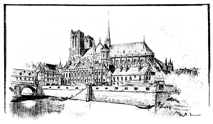 La cité de Paris.—Le temple de Jupiter devient l’église cathédrale Notre-Dame de Paris.—Les petites églises de la Cité.—Saint-Jean le Rond et les Enfants trouvés.—Très haut et très puissant seigneur le chapitre de Notre-Dame.—Le cloître et ses premières écoles.—Guillaume de Champeaux et Abélard.—Naissance de l’Université.—Les légendes: le diable Biscornette.—L’anneau de la Vierge.—Le grand Jeusneur.—Folies et mascarades des fêtes de l’âne, des fous et des innocents.—Diables, guivres et chimères.