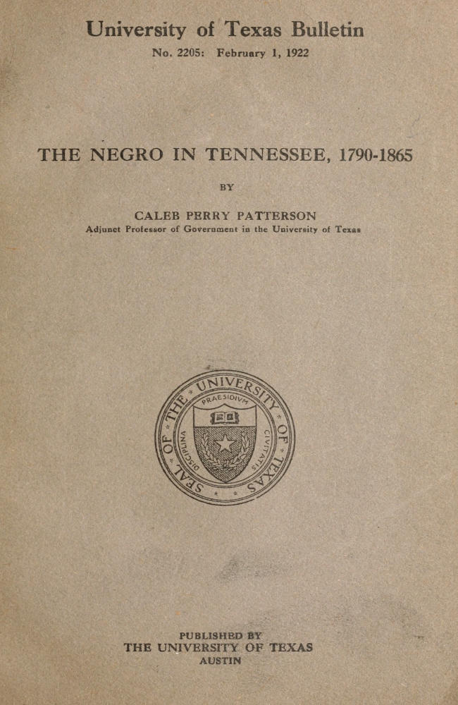 The Project Gutenberg eBook of The Negro in Tennessee, 1790-1865, by Caleb Perry Patterson
