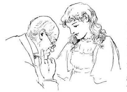 Suddenly that gentleman looked up. “Well, Sissy! What d’ye think? Seem to be staring sharp. Children read folks. Hope you’ll like me. Fond of children. If they don’t talk. You don’t talk. Look as if you wished to. Out with it! Don’t be afraid.”
