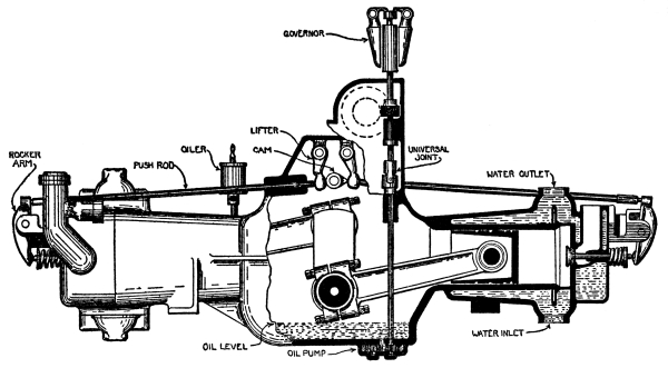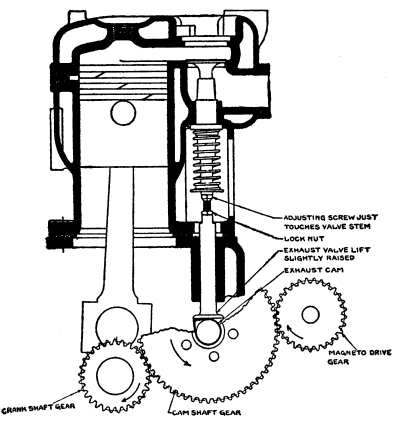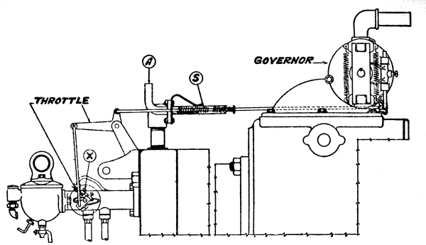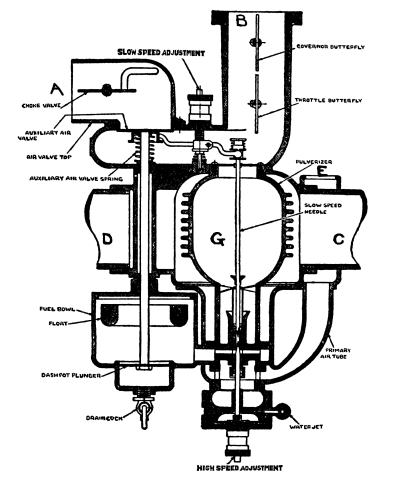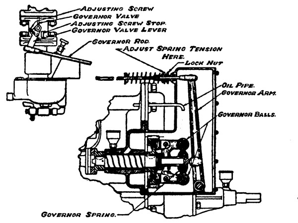 Another possible cause of a loss of power with the engine apparently in proper condition is the sticking or poor adjustment of the governor. The factory adjustment of the governor should not be changed, however, until it is definitely proved that that is where the trouble lies. [Pg 251]