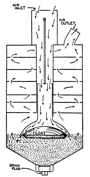 Another thing that will bring an engine to a stop is the clogging of the vent holes in the tank filler cap and in the top of the carburetor bowl. These holes should be clear, so that air can enter to replace the [Pg 256] fuel that is used; if air cannot enter the fuel will not flow, and the tank is then said to be air-bound.