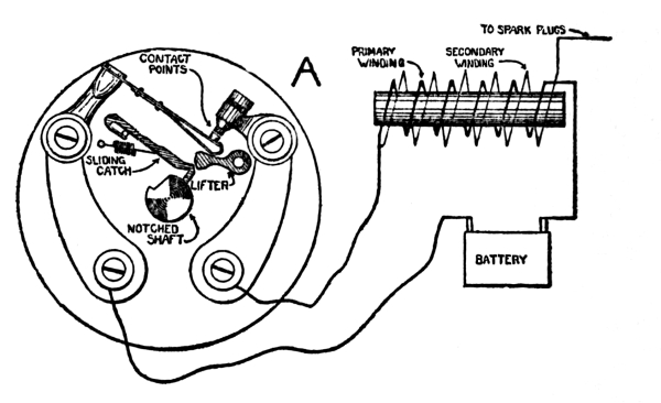 Principle of spark coil—Windings—Timer—Atwater-Kent system—Vibrator—Spark plugs |