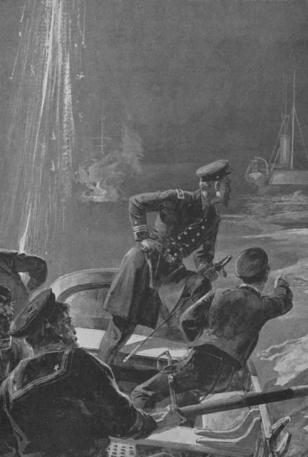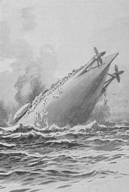 | “Shells fell upon her like hailstones, sweeping her decks, crashing into her sides. She was on fire” | Frontispiece |