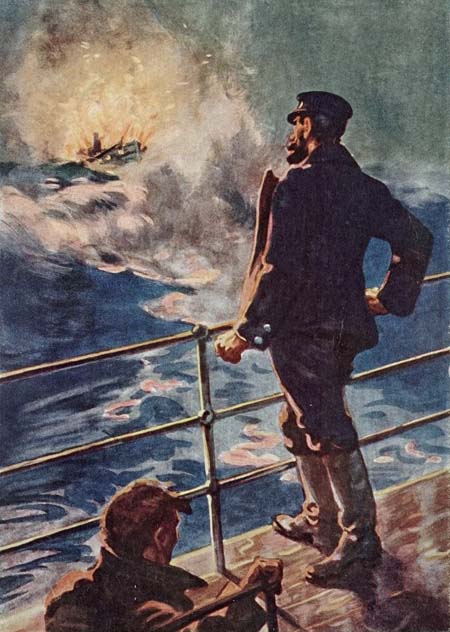| When the Great War of 1914 turned the armed hosts of Europe loose, the British Navy found before it a gigantic task: the keeping open of the trade routes. German cruisers and armed liners swept hither and thither, holding up merchant vessels, as the privateers of olden days did; and the “Emden” and the “Königsberg,” etc. became the corsairs of the twentieth century. | |